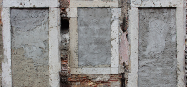 Cut to: The Protagonist standing in front of a window, which is filled with concrete. In its centre, an image has been attached, showing the never ending loop of images on other walls.
